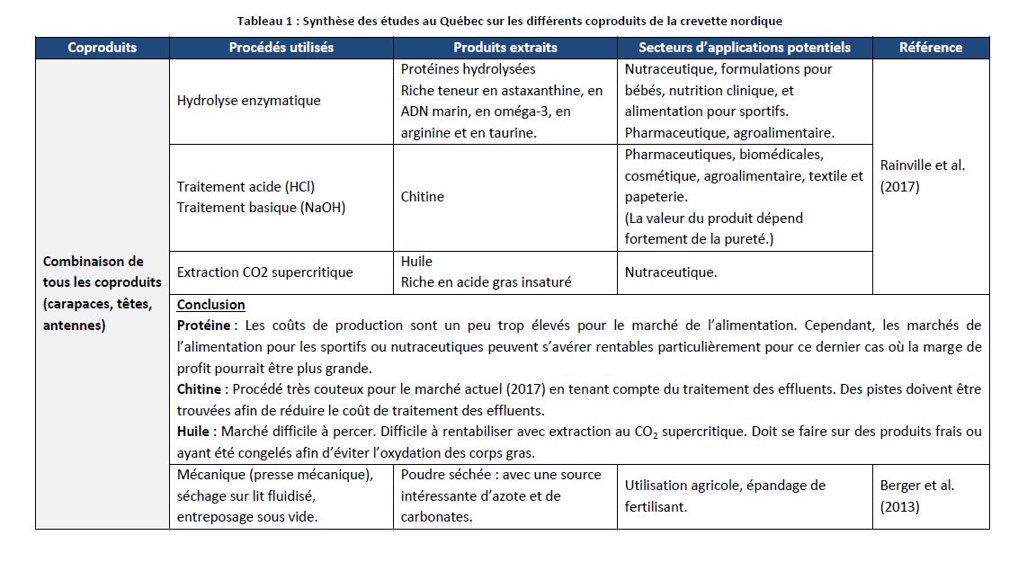 L’état de la situation et la revue littéraire sur l’usage des coproduits de crabe, homard, crevette et sébaste